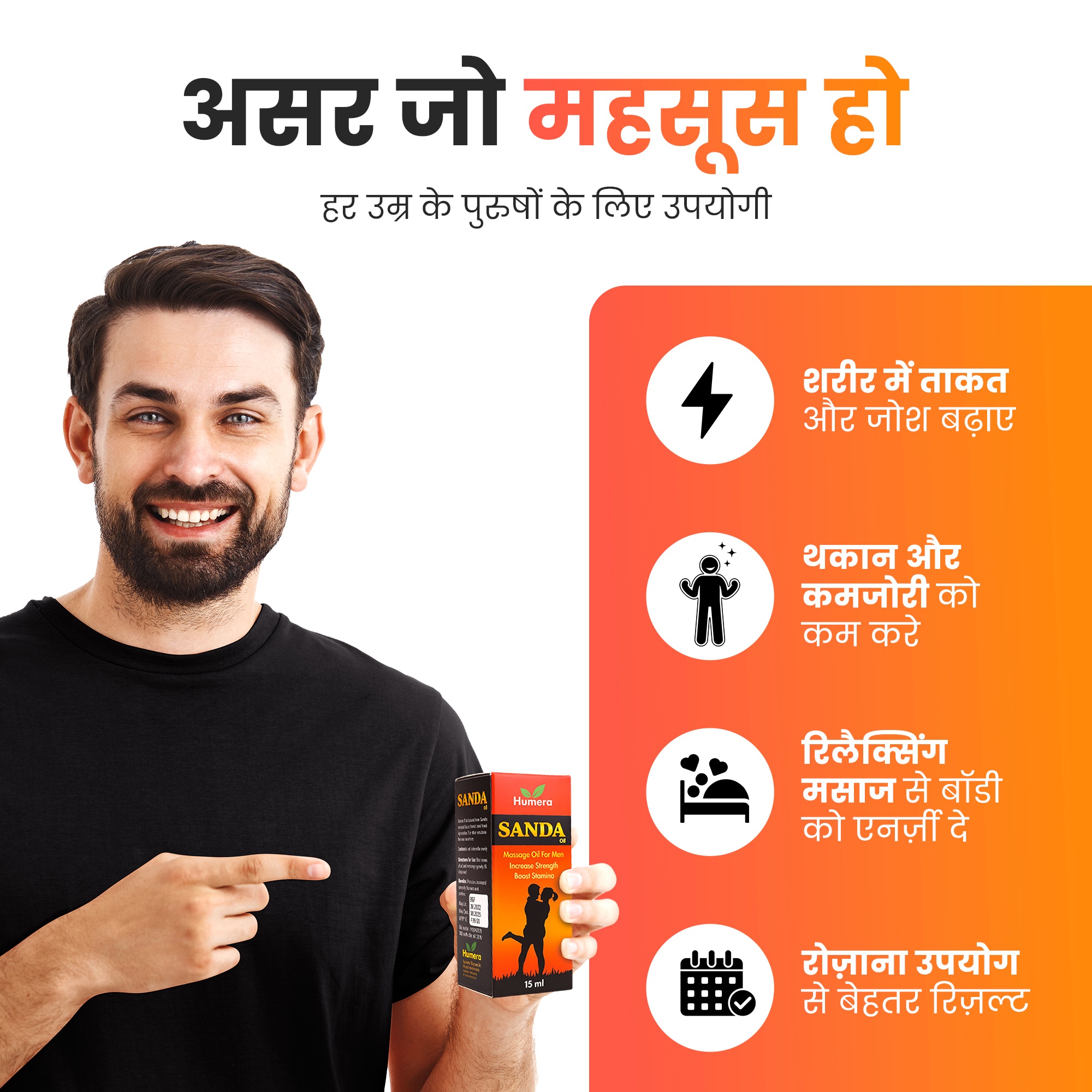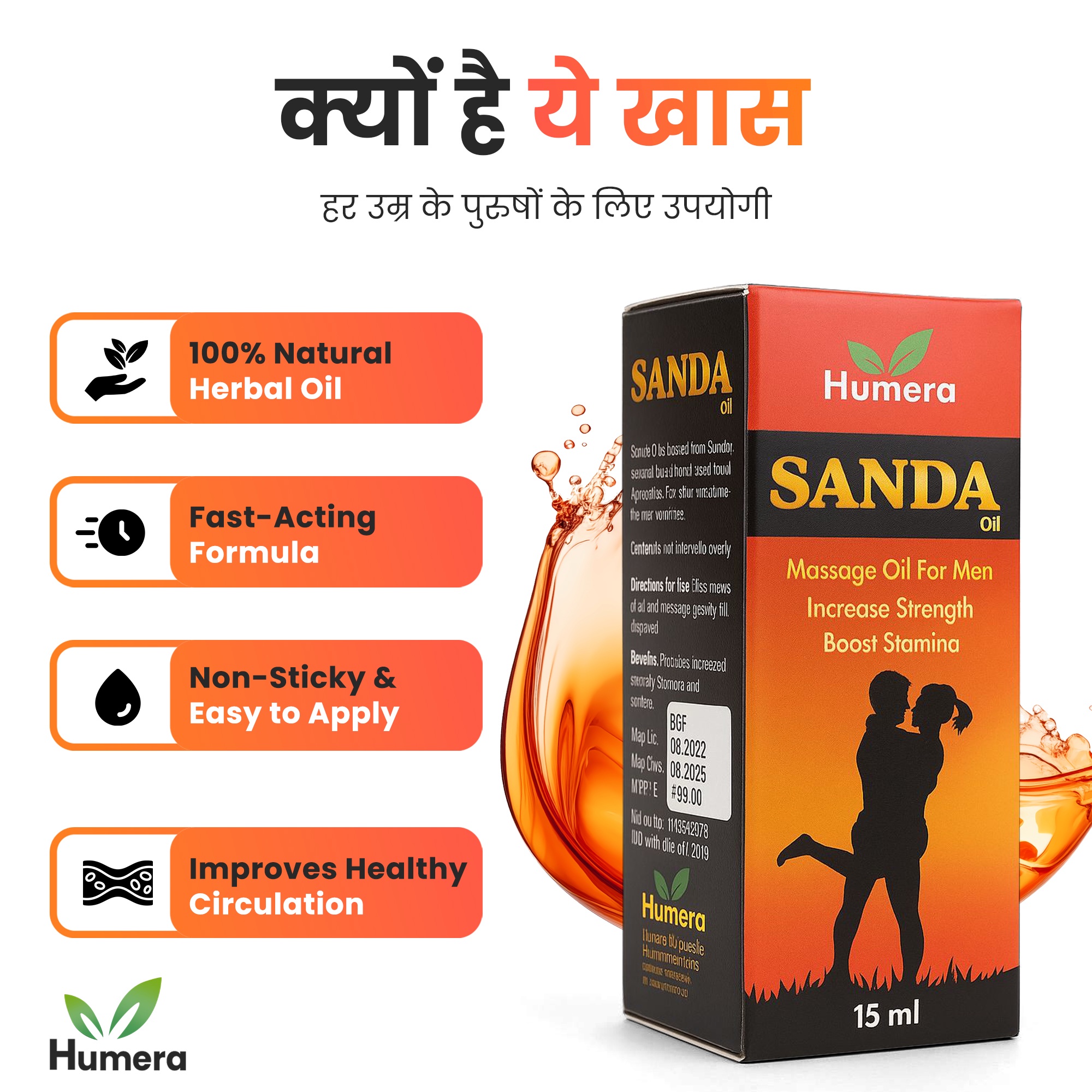 Humera Herbal Sanda Gold Oil for Men – Ayurvedic Massage Oil for Energy, Vitality & Body Strength – 15ml
